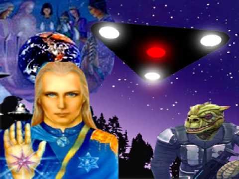 Ashtar Sheran, a Jézus Ufó, a háttérben egy gonosz raptoid leselkedik